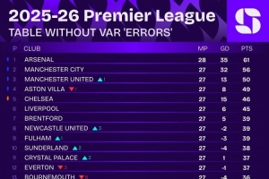 VAR沒有錯誤情況下英超積分榜: