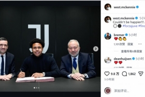 尤文官方宣布,麥肯尼與俱樂部續約至2030年。麥肯尼社媒曬出簽署新合同的照片,配文:“再開心不過啦!又簽了4年?!?/p>