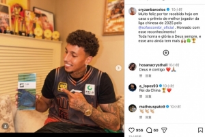 克雷桑在社媒寫道:“非常高興今天在家里收到了Sofascore頒發的2025年度中超聯賽最佳球員獎項,非常感激獲得認可!所有的榮耀都屬于上帝,希望今年能獲得更多榮譽。”