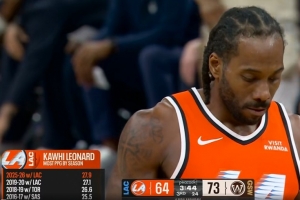 快船客場挑戰勇士,轉播方給出倫納德生涯得分最高的幾個賽季統計: