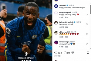 體育資訊3月3日訊 今天是德國中衛呂迪格的33歲生日,老東家切爾西為他慶生。