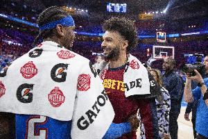 在今天掘金128-125戰勝爵士的比賽中,掘金后衛賈馬爾·穆雷發揮出色,全場比賽他19中13,三分球13中8,罰球12中11,轟下45分2籃板8助攻2搶斷的數據。