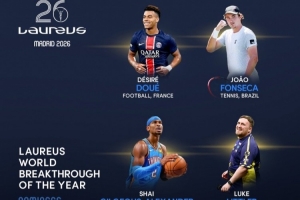 體育資訊3月3日訊 2026年勞倫斯最佳突破獎(jiǎng)候選名單出爐,巴黎邊鋒杜埃在列。