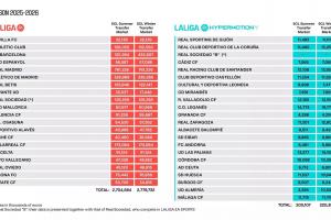 體育資訊03月03日訊 西甲官方公布了冬窗結束之后西甲各球隊的最新工資帽,皇馬、巴薩、馬競排名前三。