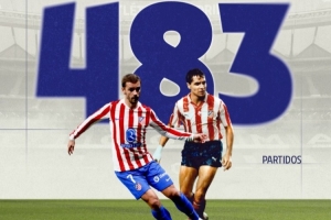 格列茲曼本場首發出戰,據馬競官方數據統計,格列茲曼迎來代表馬競出戰的第483場比賽,追平托馬斯·雷諾內斯,并列隊史出場第四多。