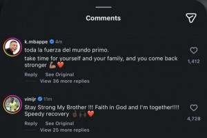 姆巴佩寫道:“把全世界的力量都給你,兄弟。為自己和家人好好休養,你會以更強大的姿態歸來!”