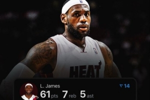 61分至今也是詹姆斯生涯的單場最高分,也是熱火隊史單場最高分。