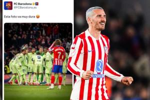 賽后格列茲曼曬出慶祝照,背景是出局后癱倒的巴薩球員。格列茲曼同時寫道:“這張照片太狠了”。