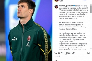 體育資訊3月4日訊 米蘭后衛加比亞更新社媒動態,確認已成功接受腹股溝疝手術。