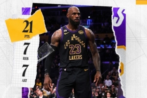 賽后湖人官方發(fā)布詹姆斯和東契奇本場(chǎng)數(shù)據(jù)海報(bào),詹姆斯砍下21分7籃板7助攻,東契奇砍下27分10籃板7助攻。