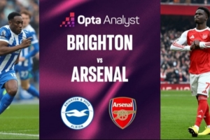 體育資訊3月4日訊 北京時間明天凌晨3點半,英超第29輪布萊頓對陣阿森納,opta賽前回顧了雙方歷史交戰數據,并對本場比賽進行了預測。