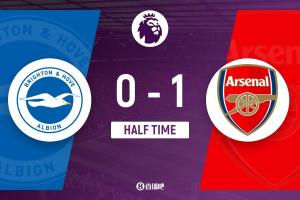 上半場補時3分鐘。半場戰罷,布萊頓0-1阿森納。