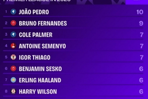 體育資訊3月5日訊 Squawka統計了2026年球員在英超的參與進球數量,并列出榜單,若昂·佩德羅參與10球居首,B費參與9球次席。