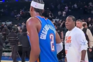 賽后,雷霆球星亞歷山大將所穿球鞋送給尼克斯的超級球迷。