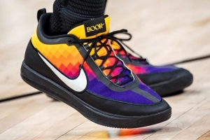 球隊曬出了賽前布克熱身的畫面,還有他腳上新配色球鞋的特寫。這雙球鞋是Book 2 “The Valley”配色。以鳳凰城都市區的昵稱“The Valley(山谷)”及地貌為靈感。