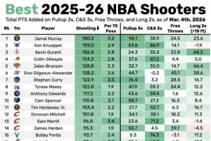 衡量參數(最后四列)依次為急停三分、接球就投三分、罰球和長兩分總評分