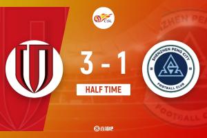 第45+1分鐘,王東升右路傳中,禁區(qū)內(nèi)費利佩頭球沒頂?shù)剑T前胡荷韜端射破門!成都蓉城3-1領先深圳新鵬城↓