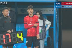 比賽第69分鐘,賀一然替補(bǔ)登場(chǎng)迎來加盟蓉城后的首秀,換下王東升。