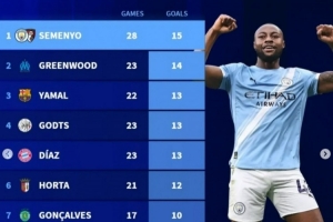 體育資訊3月6日訊 德轉盤點了本賽季歐洲前十聯賽邊鋒球員進球榜,其中塞梅尼奧居首,具體如下: