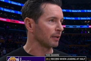 轉(zhuǎn)播方曬出數(shù)據(jù):湖人領(lǐng)先結(jié)束上半場時,本賽季戰(zhàn)績24勝2負,聯(lián)盟最佳。
