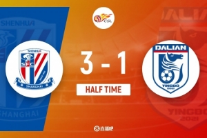 傷停補時7分鐘。上半場比賽結束,上海申花3-1大連英博。