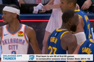 這樣一來,雷霆成為自2014-18賽季的金州勇士以來,首個連續兩個賽季在前65場比賽中取得至少50勝的球隊!