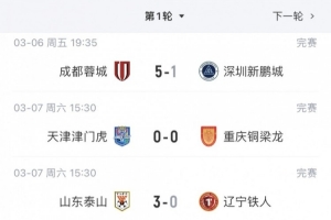 這些球隊中,山東泰山、上海申花、北京國安、河南隊和浙江隊在新賽季的首輪取勝獲得3分,他們分別戰勝遼寧鐵人、大連英博、武漢三鎮、上海海港和青島西海岸。