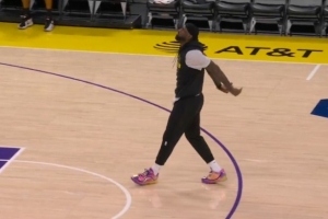 “左肘挫傷和左腳關節炎是詹姆斯在常規賽中一直面臨的問題,”Malika Andrews說,“他像往常一樣完成了賽前熱身——今早7點45分,他首位抵達球館;8點45分便開始在場上進行常規賽前訓練。(視頻)畫面中可見當時他的狀態相當不錯,但腳部反應未達到湖人隊及訓練團隊的預期。因此在距離開球約一小時時,球隊宣布他本場休戰。據了解,此次缺陣主要源于腳部問題而非肘部傷勢,接下來他將進入逐日觀察狀態。”