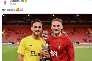 利物浦中場亞歷克西斯·麥卡利斯特和他的哥哥凱文·麥卡利斯特(圣吉羅斯后衛)都入選了本期阿根廷隊,利物浦官方社媒曬出麥卡兄弟的合照,配文:“兄弟。”