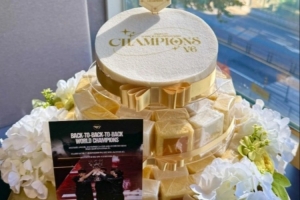 2025英雄聯盟全球總決賽冠軍戰隊T1送來了紀念年糕。