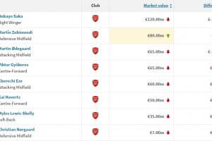 阿森納本期身價變動(單位:歐元):