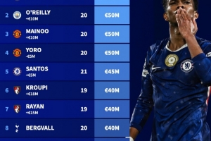 1、埃斯特旺(切爾西,18歲):8000萬歐