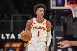 杰倫·約翰遜上季肩傷報銷前,是這個時代的完美策應(yīng)鋒:全能身手、無短板、適配任何隊友,正逼近生涯首次全明星。他會傳球、能接球投、快攻飛天、籃板狂魔且多位置防守,而且沒有明顯到足以給隊友加負擔(dān)的弱點。如果他有一手?jǐn)[脫中投,再加一手背打,簡直可以去問火箭: