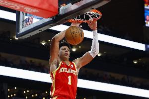 老鷹球星杰倫·約翰遜上半場就砍下20分5籃板8助攻5搶斷,是NBA歷史首個半場至少20+5+5+5斷的球員。全場比賽,他出戰40分16秒,19投10中,三分5中4,罰球11中7,爆砍31分18籃板14助攻7搶斷的全能數據,四項數據均創生涯新高,也成為NBA歷史首個達成該數據的球員。