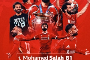 薩拉赫迎來利物浦生涯第81次歐戰(zhàn)出場,超越卡拉格成為隊史歐戰(zhàn)出場最多球員,杰拉德以73場位居第3。