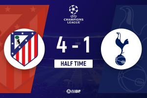 體育資訊3月11日訊 北京時間3月11日1:30,歐冠1/8決賽首回合,馬德里競技在利雅得航空大都會球場迎戰托特納姆熱刺。上半場,熱刺門將金斯基連送大禮后導致被換下,略倫特、格列茲曼、阿爾瓦雷斯和勒諾爾芒先后為馬競進球,波羅扳回一城,馬競半場4-1領先熱刺。