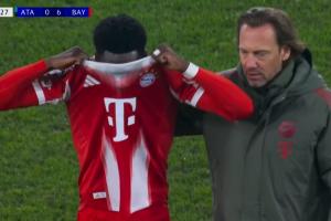 體育資訊03月11日訊 拜仁vs亞特蘭大第70分鐘,阿方索無對(duì)抗情況下受傷!直接下場了!鏡頭拍到阿方索很難過要哭了的表情!