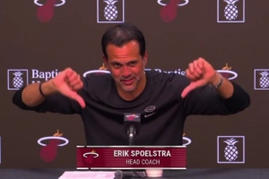 賽后,熱火主教練斯波爾斯特拉接受采訪時(shí),記者表示:“接下來我要問一個(gè)跟阿德巴約無關(guān)的問題。”