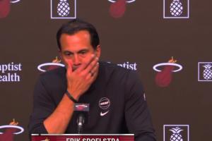賽后,熱火主教練斯波點評阿德巴約表現(xiàn)時說道:“這是一個超現(xiàn)實的夜晚,我們在這座球館里見證過太多奇跡,今晚這就這么發(fā)生了,我們很幸運,能夠見證這一刻。他第一節(jié)的表現(xiàn)就像一頭怪獸,半場40+,半場休息的時候我們還是在說就正常打我們的比賽,但球就是在不斷的找到他。一旦他得到50分,我們就認(rèn)為他能得60分,一旦他得到60分,我們就說得70分吧,我從那時候起就沒想過,甚至不敢換下他,我想讓他享受生涯之夜,讓他享受球迷的歡呼,我不知道他的得分什么時候會停止,但他一直在得分,最終我在他得分超越科比后才把他換下來。”