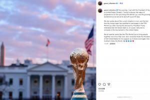 因凡蒂諾寫道:“今晚,我與美國總統特朗普見面,討論了即將舉行的FIFA世界杯的籌備情況,并表達了我們對93天后世界杯即將開賽的激動心情。