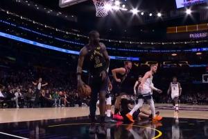東契奇被拉拉維亞誤傷到膝蓋!