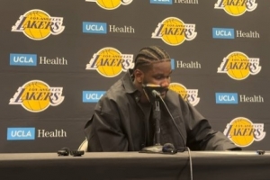 體育資訊3月11日訊 NBA常規賽,湖人120-106擊敗森林狼,賽后艾頓參加新聞發布會。