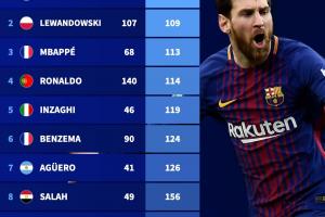 體育資訊03月11日訊 德國(guó)足球轉(zhuǎn)會(huì)市場(chǎng)統(tǒng)計(jì)并列出了歐冠歷史上,所有至少打進(jìn)20球的球員中,每球平均用時(shí)最短的球員前十。梅西以平均105分鐘一球排名第一,萊萬、姆巴佩排名前三。