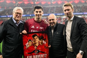 體育資訊3月12日訊 在勒沃庫森主場迎戰(zhàn)阿森納的歐冠比賽前,勒沃庫森為哈弗茨準(zhǔn)備了歡迎儀式。