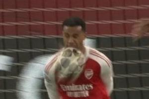 體育資訊03月12日訊 歐冠1/8決賽首回合,阿森納客戰勒沃庫森,第22分鐘,加布里埃爾用臉擋住對手射門。