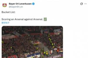 藥廠社媒曬出安德里希破門視頻,并配文:‘愿望清單:對陣阿森納時攻入一粒阿森納式進球?’。