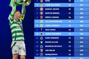 在現(xiàn)役球員中,為單一俱樂部至少出戰(zhàn)500場比賽的球員中,阿金費(fèi)耶夫以817場居首,科克以727場位居次席,諾伊爾則以590次位居第4位。