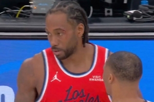 快船VS國王,倫納德眼角被打破血流不止,回更衣室治療后目前已經返場。