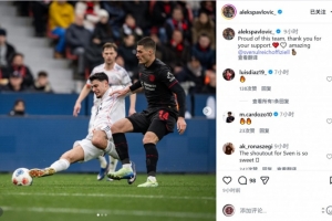拜仁中場帕夫洛維奇社媒曬出比賽照片,配文:“為這支球隊感到驕傲,感謝你們的支持,烏爾賴希表現太棒了。”