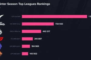 體育資訊3月15日訊 根據Esports Charts數據統計,LCK海外收視達150萬人,超LPL海外6倍!
